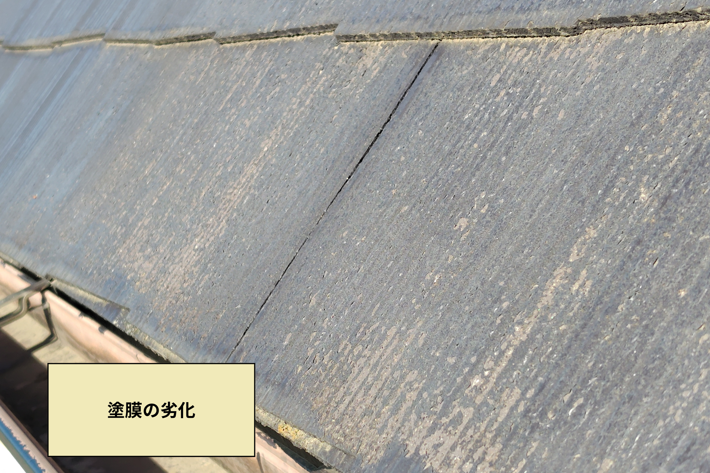 既設屋根材は、化粧スレート材(コロニアル)で、パッと見た限りでは異常が無いようにも思えます。