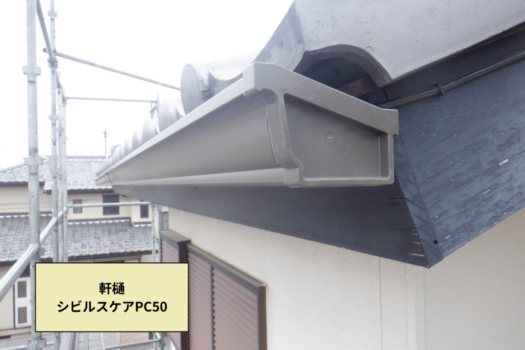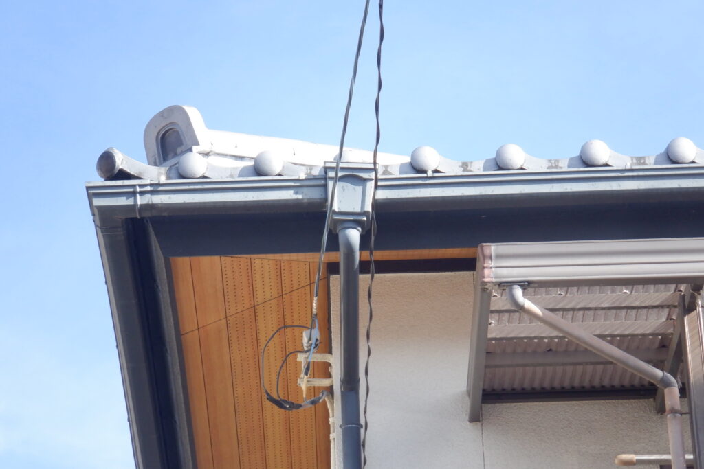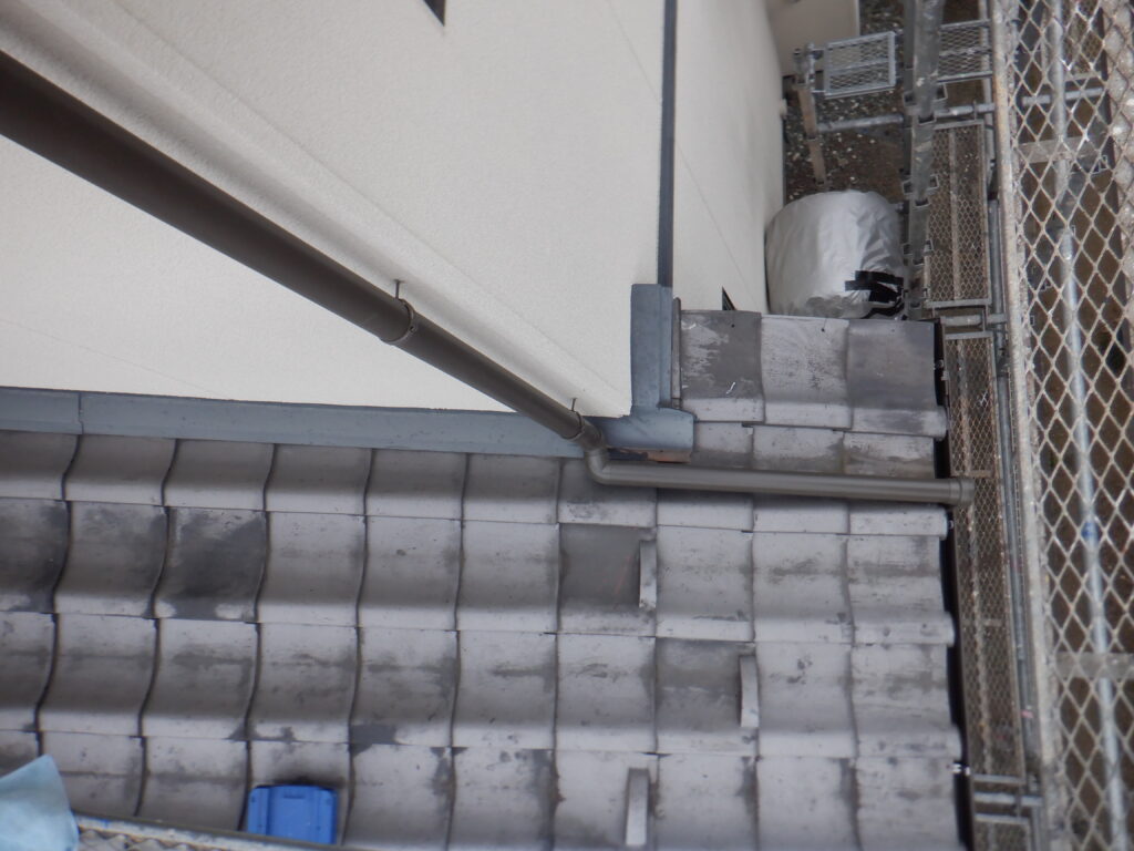 既設雨樋は、エスロンE70で、既に廃盤となっている製品でした。パッと見た限りでは分かりづらいので、近くで確認してみたいと思います。