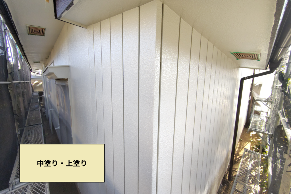中塗り・上塗りを終え、最後に付帯物の塗装を行って完了となります。